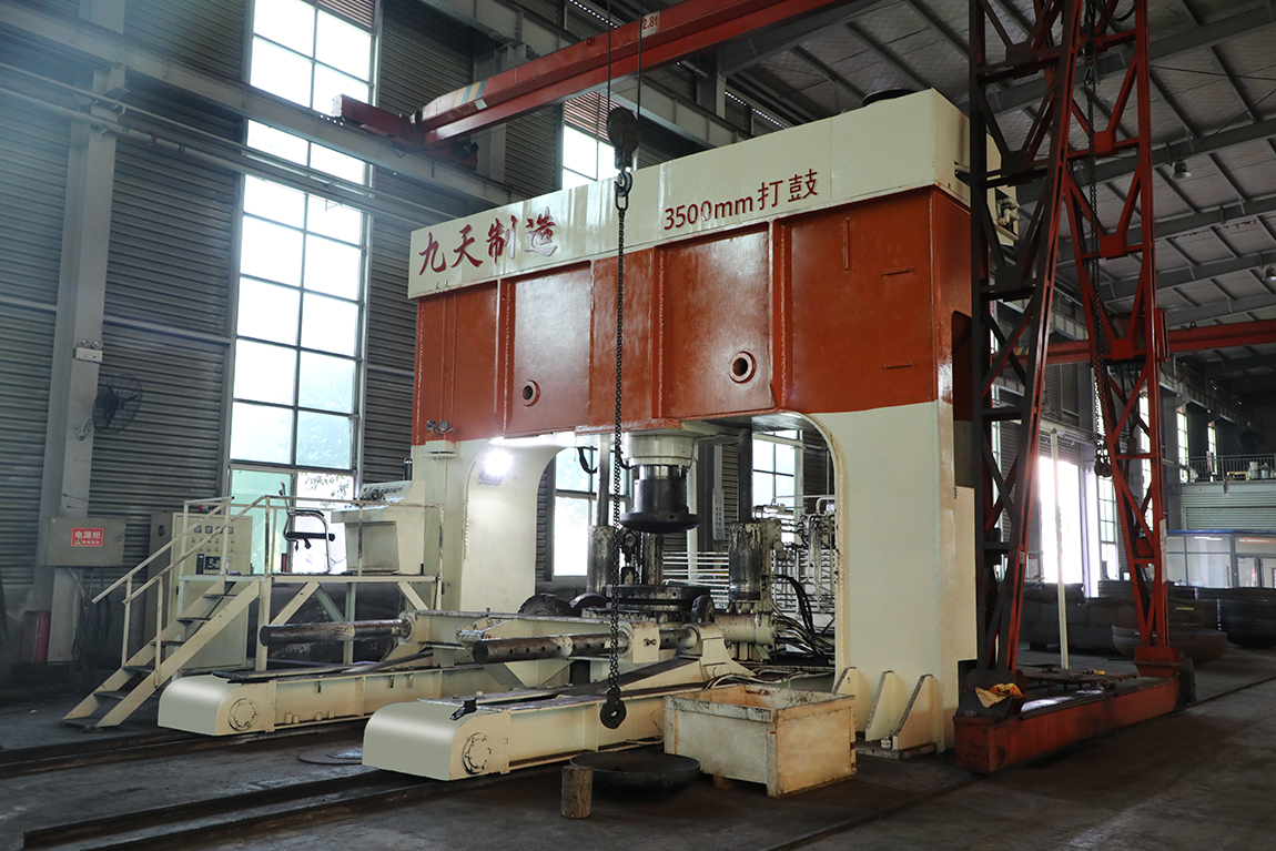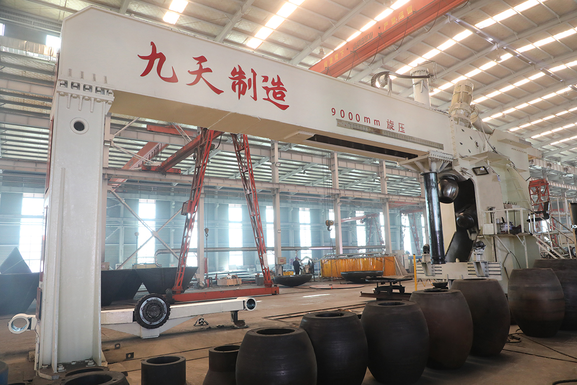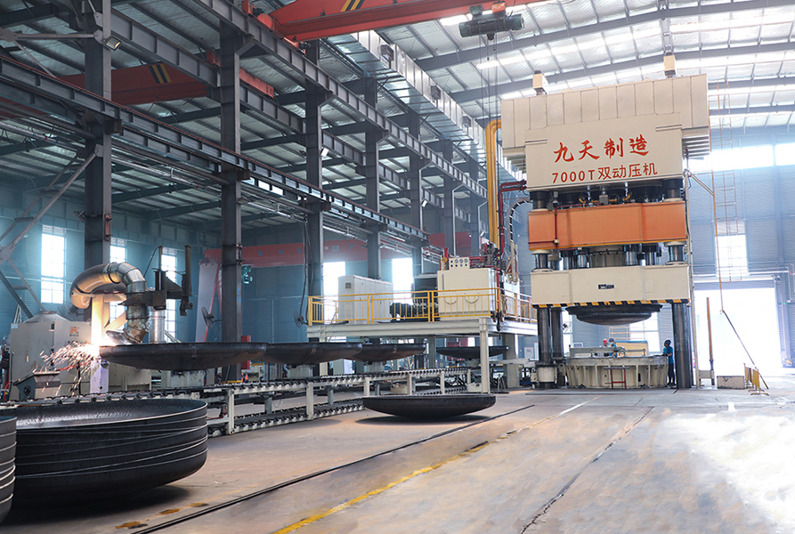 河南九天封頭制造有限公司是一家集研發(fā)、生產(chǎn)、銷售、服務(wù)于一體的國(guó)有控股公司,注冊(cè)資金為1億元。公司座落于河南省商丘市虞城縣高新技術(shù)開發(fā)區(qū),南北相臨京九鐵路、濟(jì)廣高速,東西有連霍高速、隴海鐵路穿境而過,位置優(yōu)越交通極為便利。 公司主要設(shè)備有600T—36000T的雙動(dòng)壓機(jī)各1臺(tái),3.5米—13米的旋壓機(jī)組各1套,6000W—30000W激光下料機(jī)6臺(tái),6米、8米的等離子焊機(jī)及1米、1.6米、2.6米、5米的立車各1臺(tái),龍門式20000W三維激光切割機(jī)、16米雙頭龍門式銑邊機(jī)、14.5米井式燃?xì)鉄崽幚頎t、直徑10米封頭專用拋丸機(jī)各1臺(tái),最高可達(dá)1300攝氏度的8.5米、6.5米、4米、2米熱處理爐各1臺(tái),自動(dòng)拼板焊機(jī)2臺(tái),手工焊機(jī)若干臺(tái)等,以及與之配套的電液伺服萬(wàn)能試驗(yàn)機(jī)、全自動(dòng)低溫沖擊試驗(yàn)機(jī)、金相顯微鏡(含磨拋機(jī)、切割機(jī))、觸摸屏式硬度計(jì)、臺(tái)式直讀光譜儀等各類金屬實(shí)驗(yàn)設(shè)備。